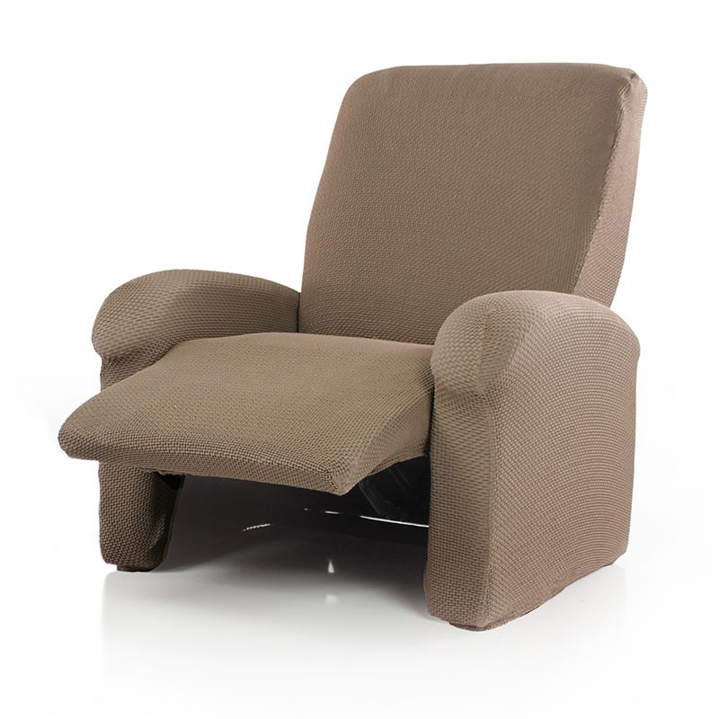 Pokrowiec elastyczny na fotel Relax Carla. Odpowiedni dla zmechanizowanych foteli relax, w których podnóżek jest niezależny od siedzenia, w standardowych kształtach i / lub większej objętości, z uszami lub bez. Całkowicie zakrywa sofę relax, złożoną z kilku części, dzięki czemu uzyskuje się optymalny efekt, ponieważ nie przesuwa się podczas korzystania z funkcji relax.